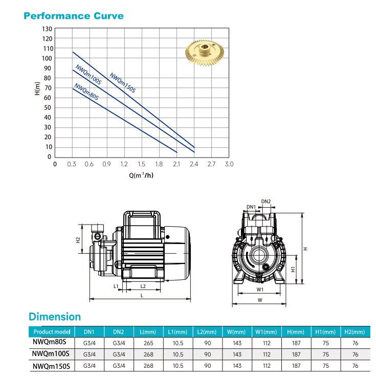 Single-phase motor withbuilt-in overheat protectorInsulation class: B